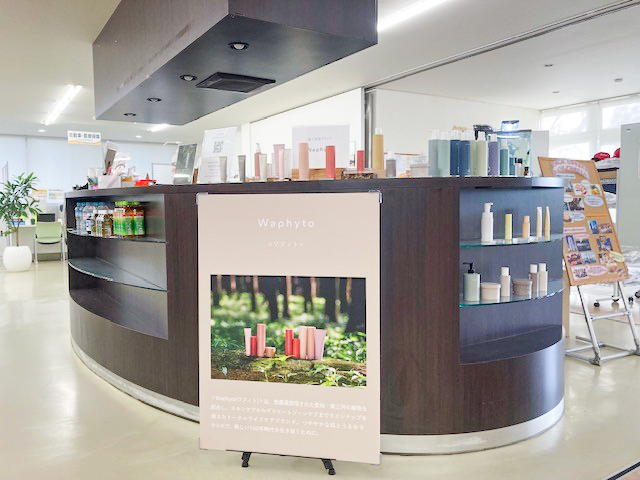 充実したお菓子や飲み物、自社グループ関連の化粧品やサプリの販売のほか、作業服の交換、名刺の手配などもしています。